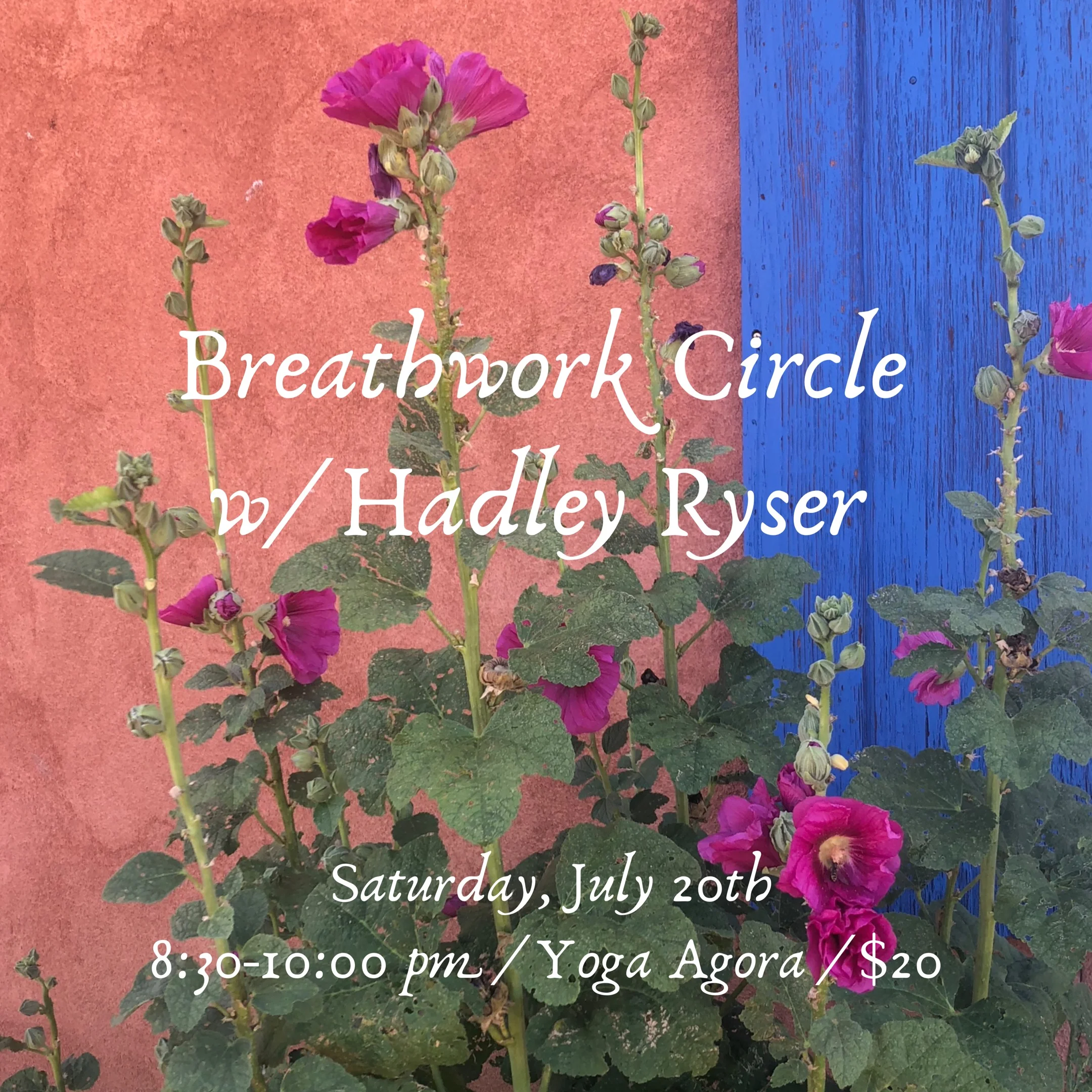 Breathwork is an active meditation designed to facilitate emotional release while simultaneously bringing you closer to the joy, appreciation, and bliss that already exists inside you. You’ll access higher states of consciousness while experiencing deep release and healing. You’ll leave feeling lighter and blissed out, and with a new awareness that will last much longer than the actual event. We will begin in circle to ground and connect and then proceed to the breathwork portion where we will be lying down.